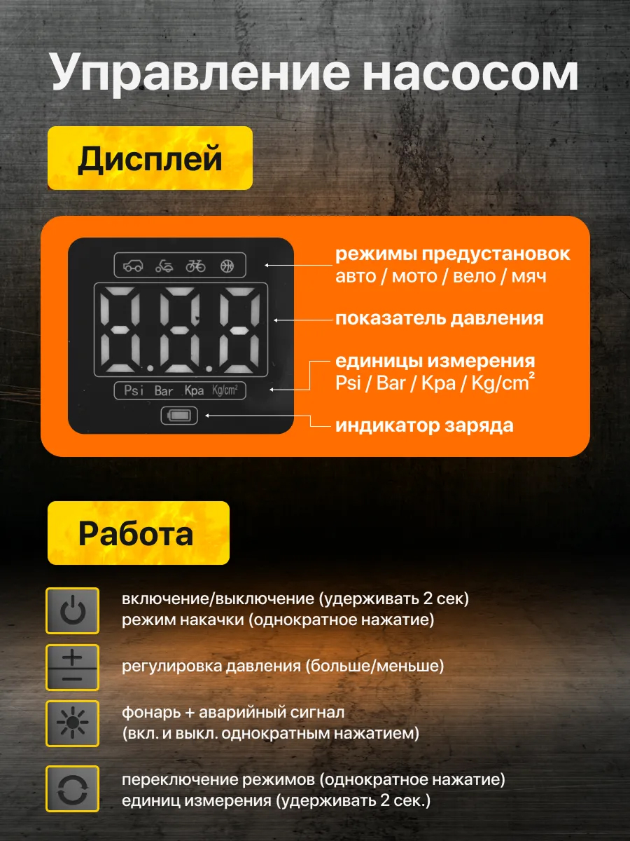 Этот насос — отличный подарок для автомобилистов, туристов и любителей активного отдыха. Прочный корпус, медный двигатель и быстрая зарядка через USB Type-C гарантируют долгий срок службы. С ним вы всегда будете готовы к любым неожиданностям!